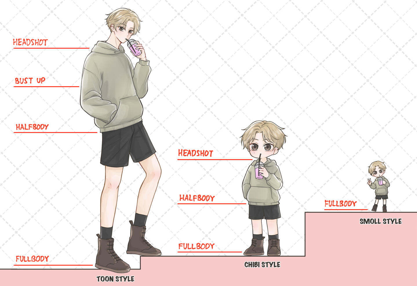 Approximate working days: smoll style (1-3days), chibi style (3-10days), toon style (7-14days). Depending on the level of difficulty, it can be faster or slower.